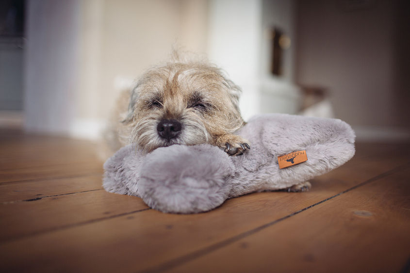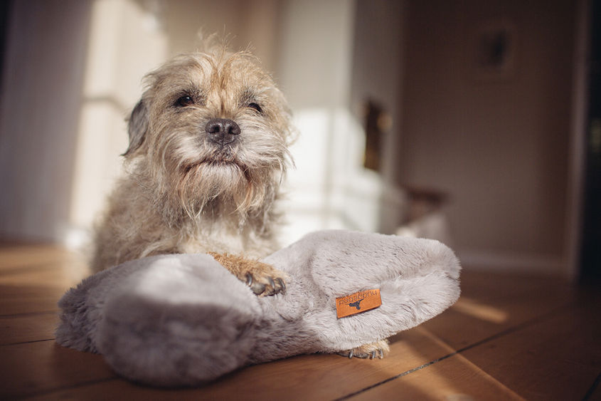 Perfekt als Hundekopfkissen, zum Kuscheln und Gernhaben.